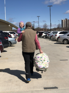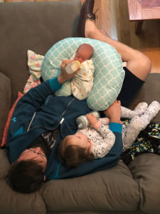 This first picture was taken when Eloise was just four days old. We were in the midst of the jaundice chaos and I snapped this in the parking garage of the hospital. I wasn’t allowed to lift anything heavier than Ellie, which unfortunately included both her carseat and our toddler. Clara was being her regular two-year-old self and not completely complying with our expectation to move in some kind of general direction of the car, so he scooped her up while carrying the baby at the same time. It may not seem like much, but in that moment, my husband was also my knight in shining armor. He single handedly saved me from the stress of the moment and the compounding stress of the situation.